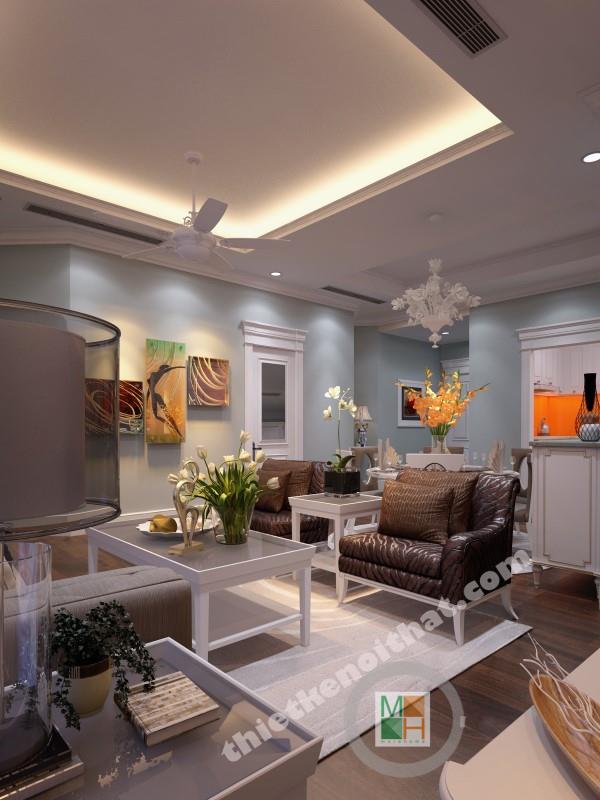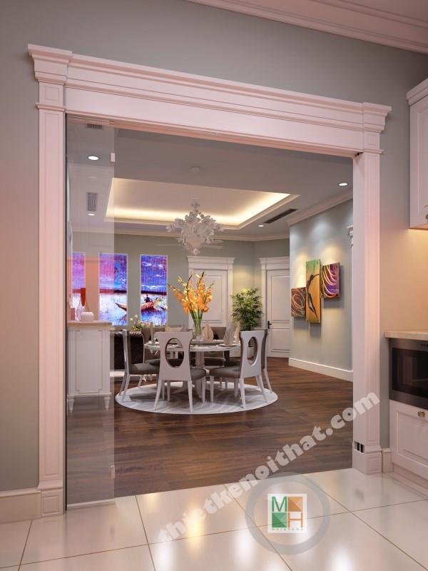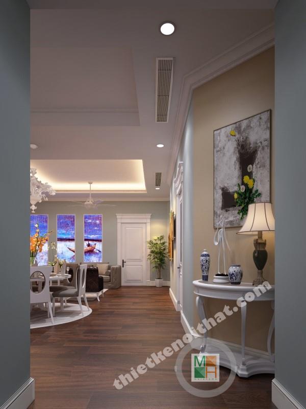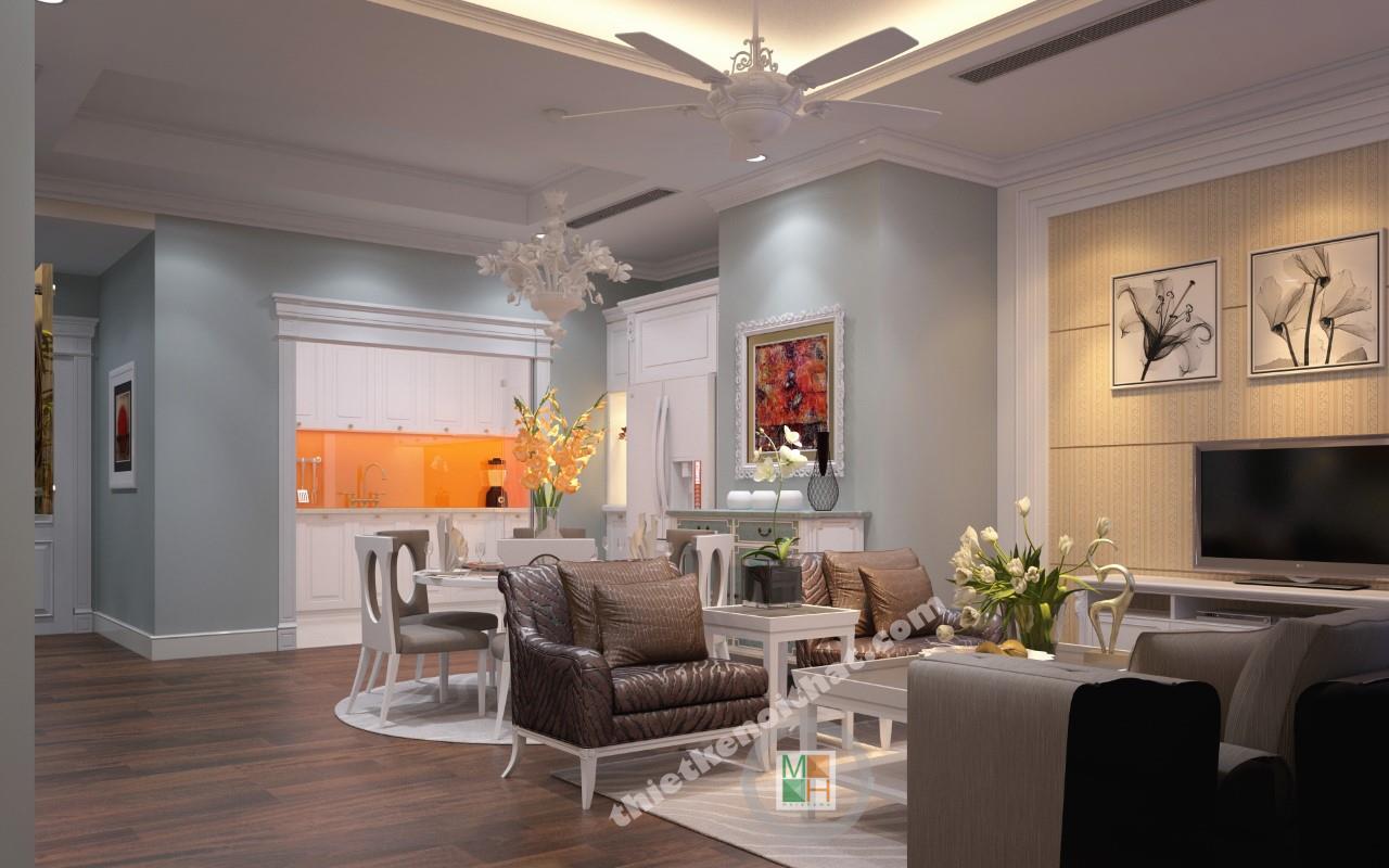 Phong cách thiết kế kiến trúc nội thất tân cổ điển khiến căn hộ tại khu chung cư Royal City của chị Hằng trở nên sang trọng và quyến rũ. Nhược điểm của màu trắng là nếu sử dụng quá nhiều sẽ dễ gây cảm giác nhàm chán nên các kiến trúc sư của Morehome đã khéo léo thêm thắt vào các chi tiết phụ màu nóng để tạo điểm nhấn.