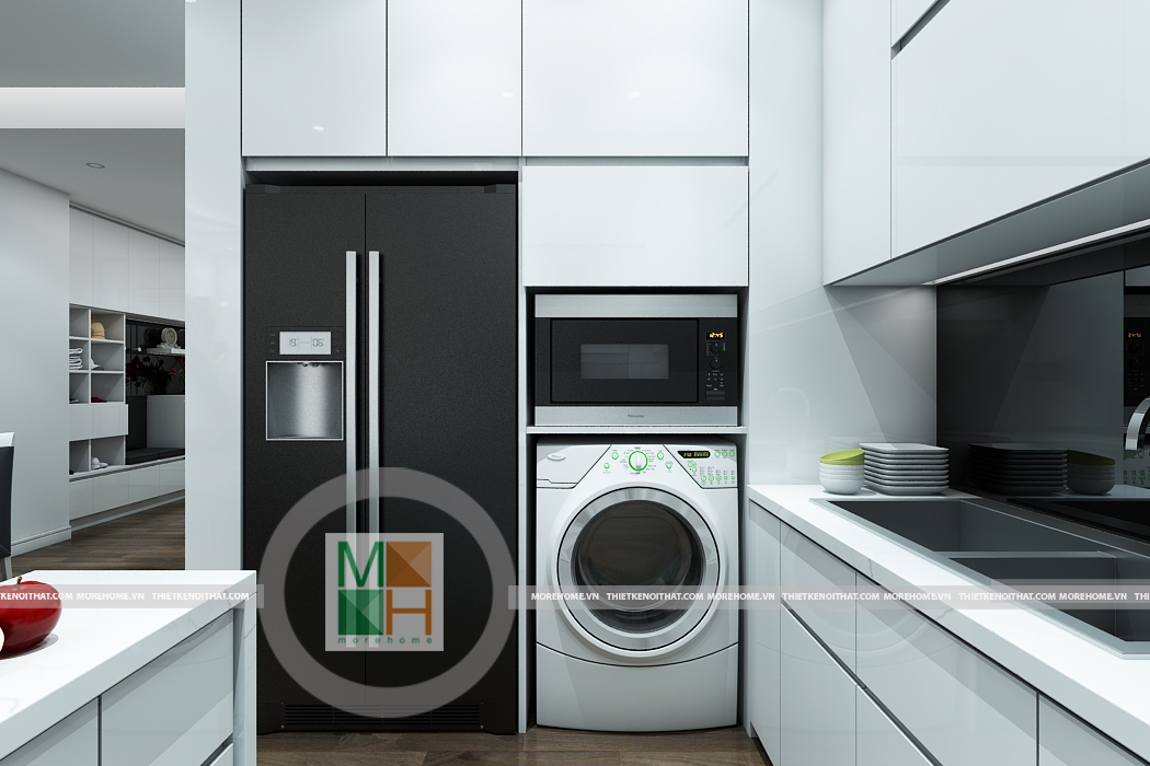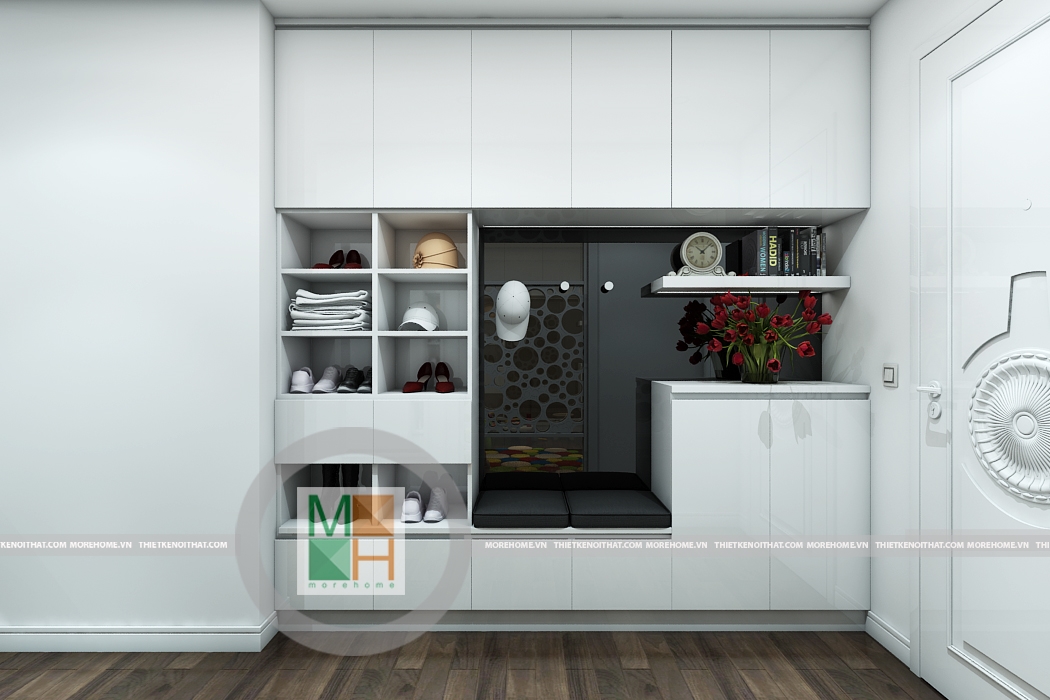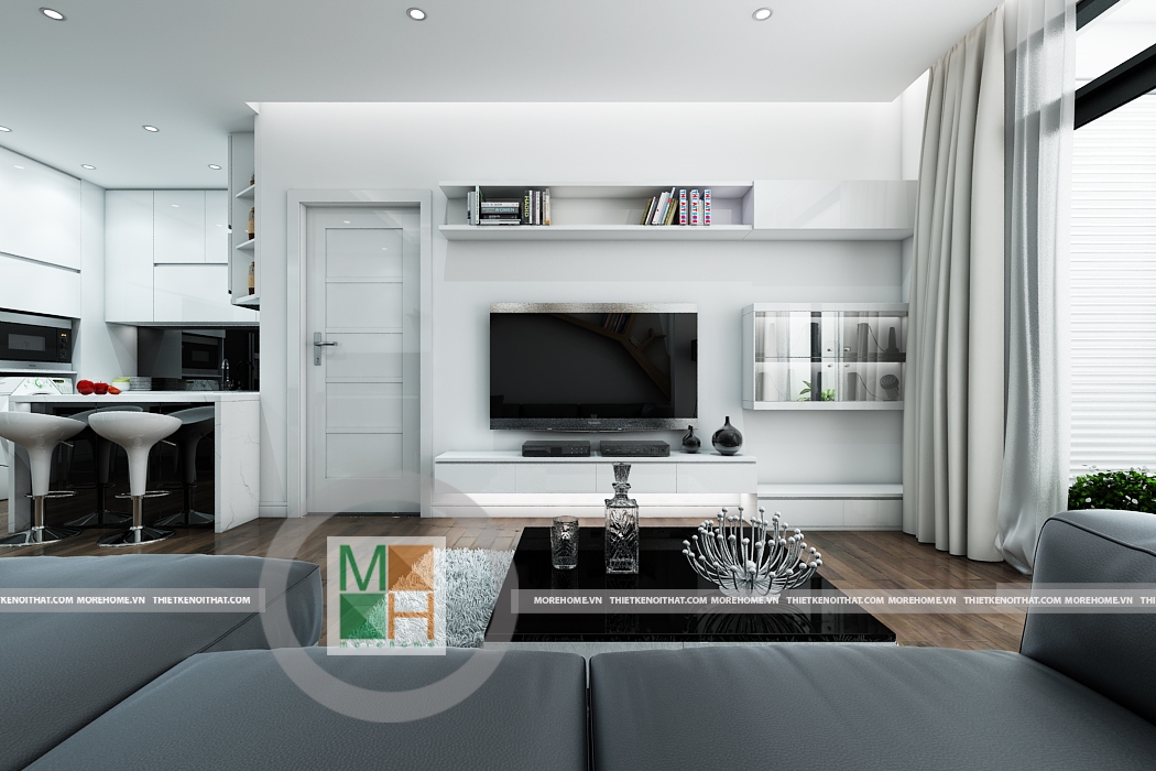 Căn hộ trong tòa R5 thuộc Royal City được các kiến trúc của Morehome thiết kế nội thất theo phong cách hiện đại, đơn giản để phù hợp với cuộc sống bận rộn nơi đô thị.