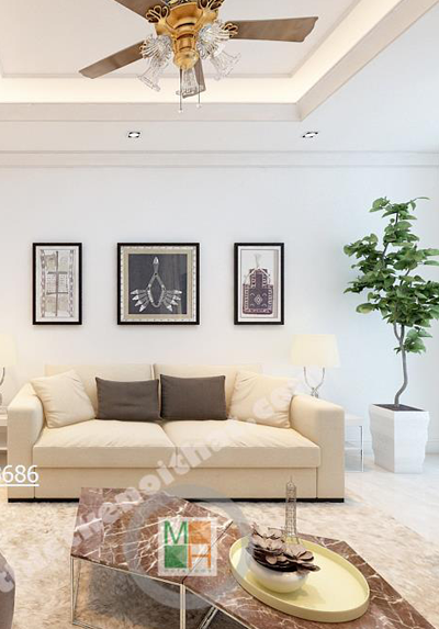 Phòng khách cũng như bao căn phòng khác không thể thiếu sự hiện diện của bộ sofa, vừa là vật dụng trang trí, vừa phục vụ hữu ích cho nhu cầu sinh hoạt hàng ngày của gia chủ. Nó cũng là nội thất quan trọng thể hiện phong cách, đẳng cấp và gu thẩm mỹ của gia chủ, để chủ nhà tiếp khách thoải mái và tiện lợi hơn. Tuy nhiên bộ sofa này có điểm mới ở chỗ là ngoài chiếc ghế sofa dài đặt sát tường thì còn có 2 chiếc ghế bành dài 2 bên chiếc bàn có hình dáng và màu sắc rất mới lạ. Đó là chiếc bàn không tròn, không vuông mà rất sắc cạnh với kiểu dáng rất đặc biệt…