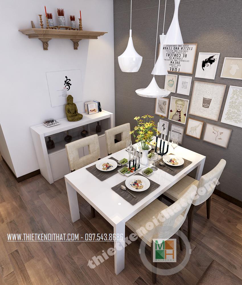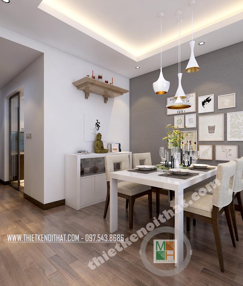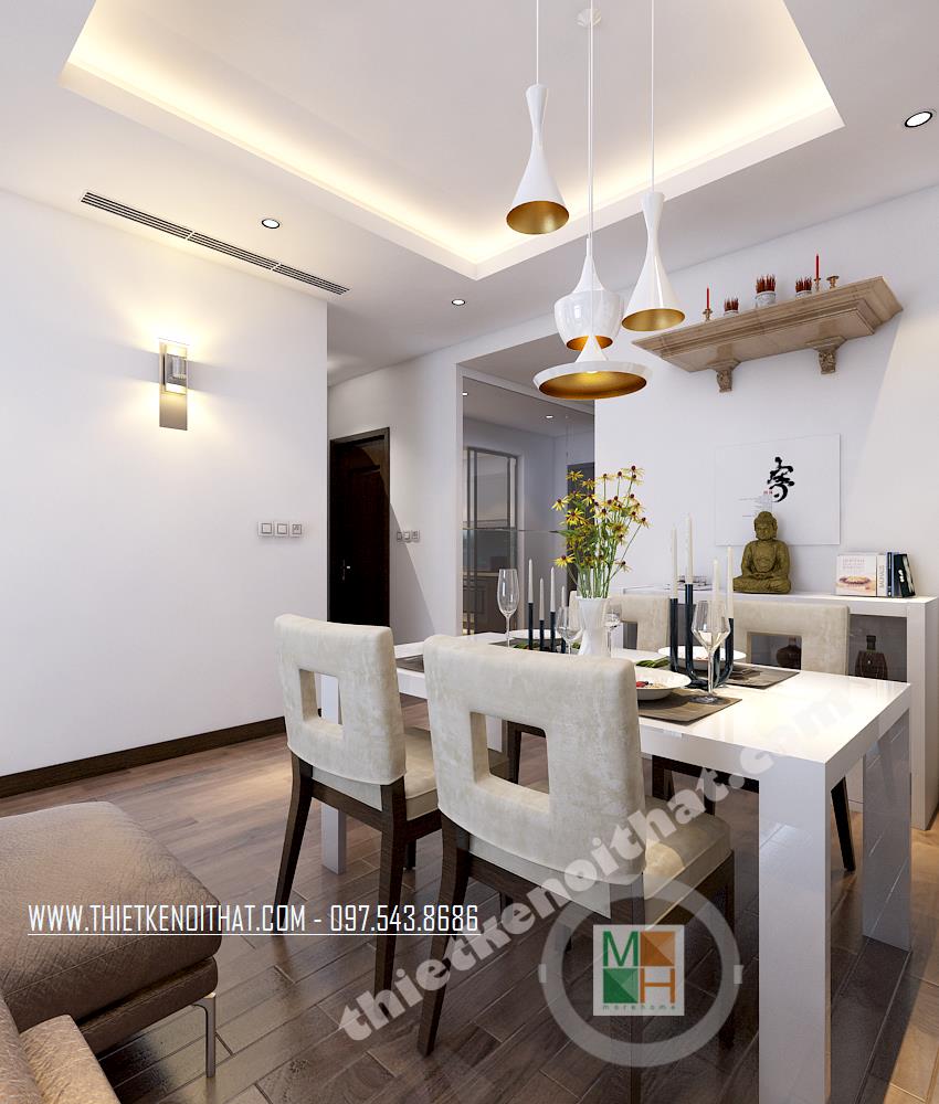 Thiết kế bàn ăn liền kề với phòng khách mang đến sự gần gũi và thoải mái cho gia chủ. Thiết kế bàn ăn vừa phải phù hợp với các gia đình nhỏ và tiết kiệm tối đa không gian. Để tránh sự nhàm chán và tạo điểm nhấn sáng tạo cho căn phòng, kiến trúc sư đã thêm vào các thiết kế đèn hay ghế ăn cách tân sáng tạo.