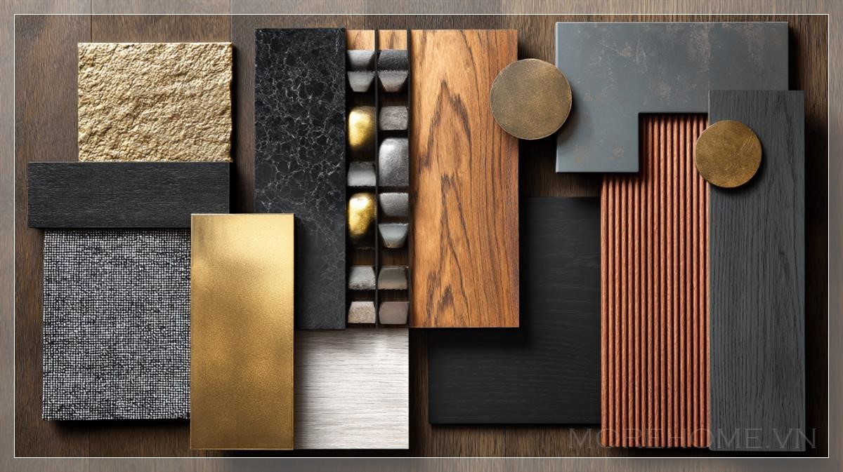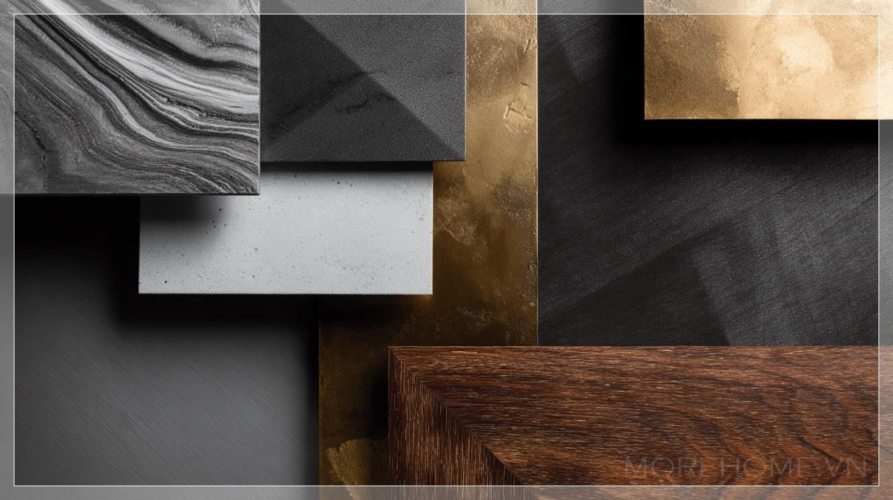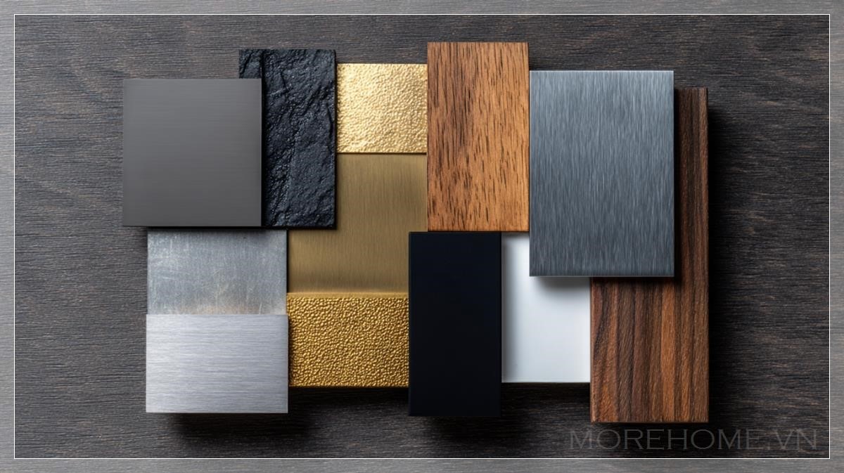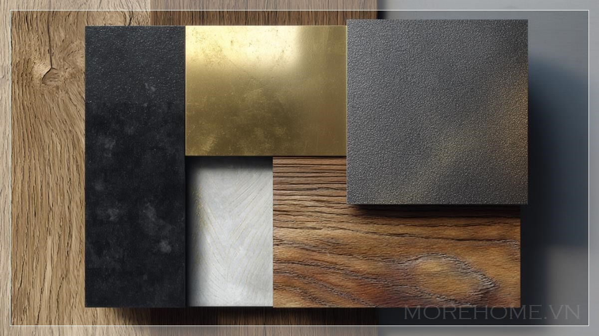 Trong không gian thiết kế hiện đại, mỗi chất liệu đều mang một vẻ đẹp và cá tính riêng. Một sự kết hợp hoàn hảo giữa gam màu xám gun metal, thép phủ bột, gỗ sẫm màu, đen, vàng và trắng không chỉ tạo nên sự mạnh mẽ, mà còn mang đến một cảm giác tinh tế, sang trọng đầy cuốn hút. Gun metal grey, với độ bóng mờ đặc trưng, tạo nên sự bền bỉ và ổn định, trong khi thép phủ bột mang lại sự hiện đại và sạch sẽ, dễ dàng bảo trì.