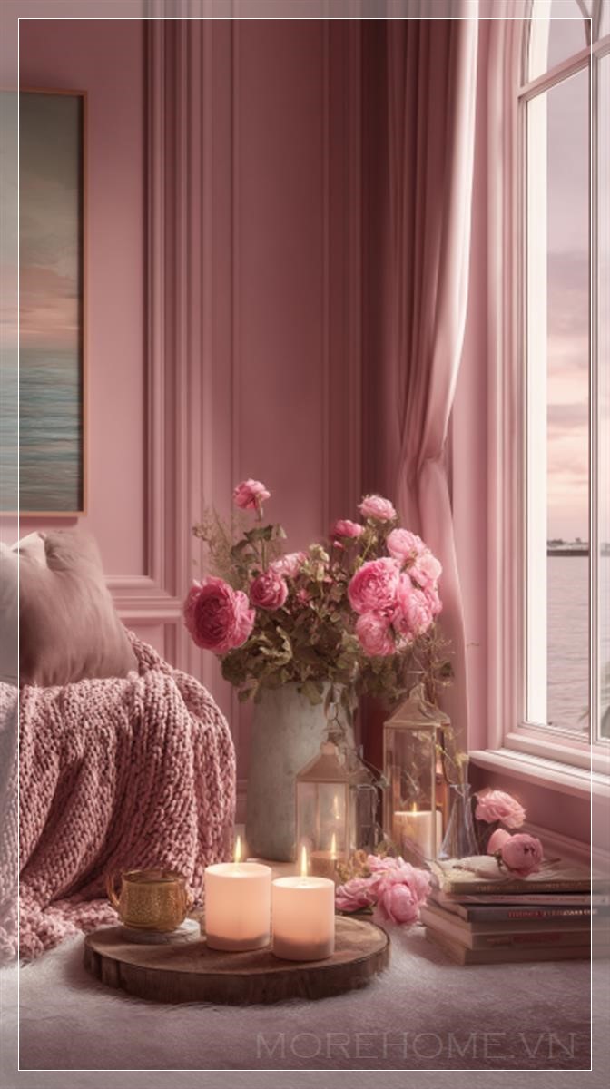 Khi bước vào căn hộ của anh Tuấn, mọi giác quan đều được đánh thức bởi không gian ấm áp và dễ chịu. Ánh sáng tự nhiên nhẹ nhàng chiếu qua những ô cửa sổ lớn, làm nổi bật sắc hồng ấm cúng bao trùm không gian. Mỗi góc nhỏ trong căn hộ này đều toát lên một sự hài hòa tinh tế, từ những bức tường sơn màu hồng pastel nhẹ nhàng cho đến những chi tiết trang trí mang đậm phong cách hiện đại nhưng vẫn giữ được sự ấm cúng, gần gũi.