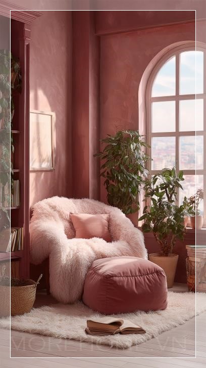 Thiết kế này không chỉ là về màu sắc hay vật liệu, mà là về cảm giác mà mỗi không gian mang lại. Lựa chọn sắc hồng ấm cúng làm tông màu chủ đạo không chỉ làm dịu mắt mà còn tạo nên một bầu không khí dễ chịu, lý tưởng cho những buổi tối thư giãn hay những buổi gặp gỡ bạn bè. Các món đồ nội thất, từ sofa bọc vải mềm mại đến các món trang trí nhỏ xinh, đều được lựa chọn kỹ càng để không chỉ đẹp mắt mà còn thật sự tạo ra sự thoải mái và ấm cúng cho gia đình.