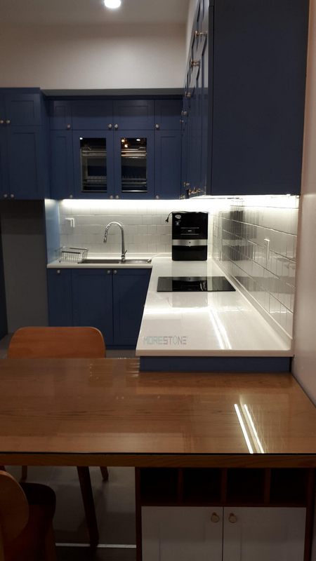 Mẫu thi công đá ốp Himacs trắng sang trọng và tinh tế được áp dụng cho các công trình như chung cư, nhà phố, biệt thự.