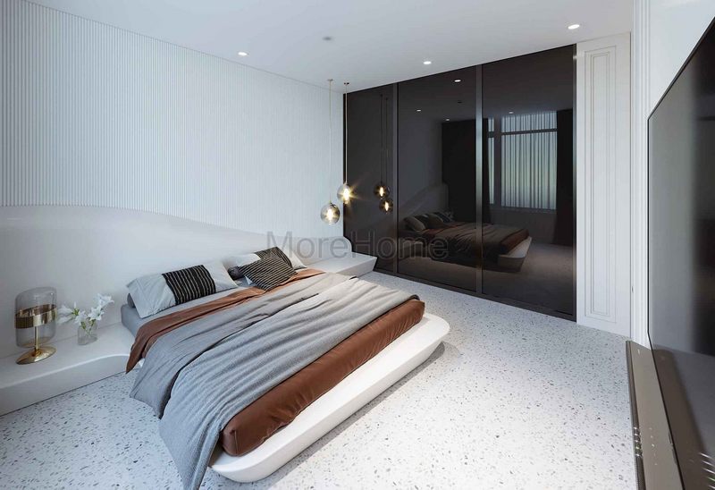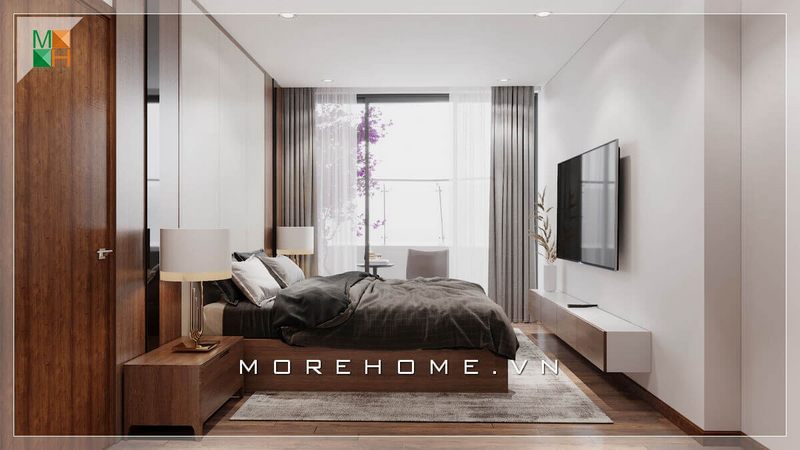 Phòng ngủ được thiết kế rộng rãi và trang bị nội thất với tone màu trắng hiện đại sẽ tạo nên không gian ấn tượng và trẻ trung.